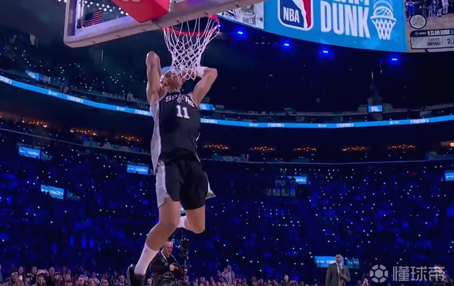 卡特-布莱恩特完成胯下大风车,得到本次扣篮大赛唯一一个满分扣篮,并将字母哥惊出“表情包”。