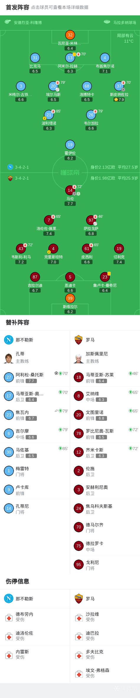 第71分钟,韦斯利造点,马伦主罚命中,罗马2-1